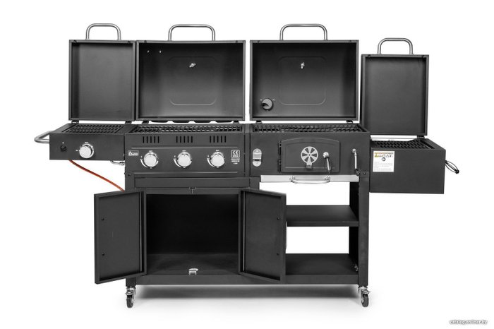 Комплект поставкиПри покупке газового гриля у нас в комплекте всегда идет редуктор и газовый шланг. Вам не нужно беспокоиться о том, что вы что-то упустили, прежде чем использовать оборудование. Все, что вам нужно, это газовый баллон.Редуктор имеет соединение для большого газового баллона 11 кг (ключ на 27 мм) с резьбовым входом на 21,8 л.