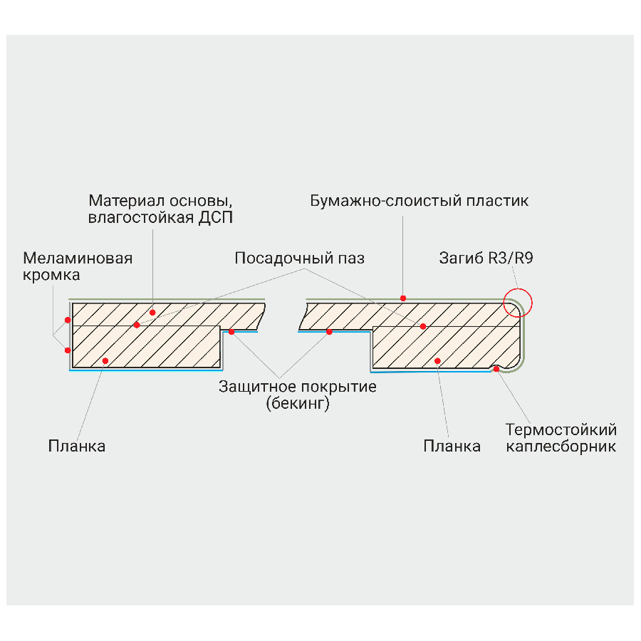 — Поверхность столешниц не выгорает на солнце и не подвержена агрессивному воздействию моющих средств;