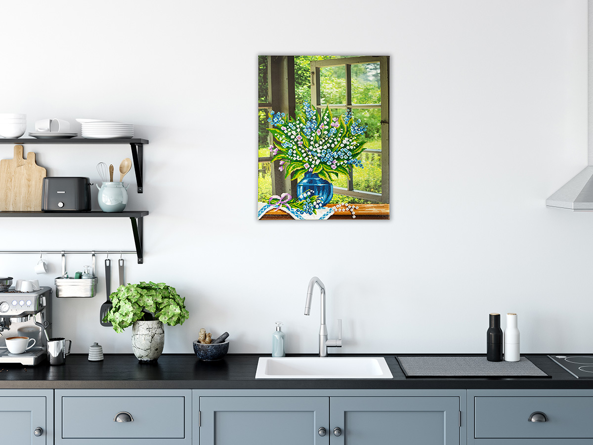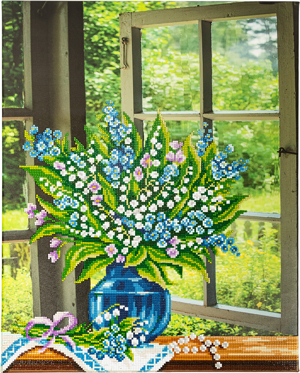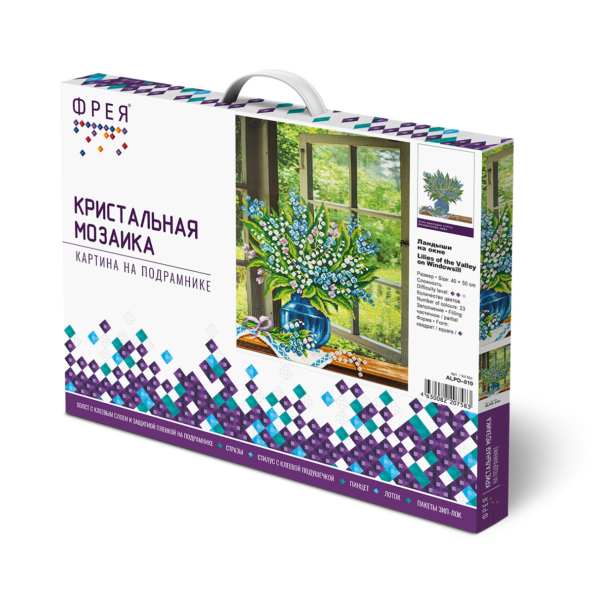- Состав набора Крепление, Лоток, Пинцет, Стилус, Стразы, Холст с клеевым слоем и защитной пленкой на подрамнике