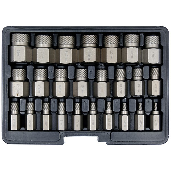 - 25 экстракторов с рабочим диапазоном от 3 мм до 23 мм;