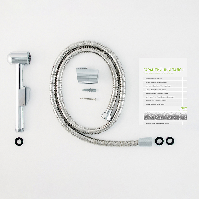 Легкая и прочная гигиеническая лейка из ABS пластика с четким нажатием на кнопку подачи воды, форсунки лейки изготовлены из силикона - их легко очистить обычной влажной тряпочкой. Усиленный душевой шланг оптимальной длины 1,2 м выдерживает повышенное давление в системе