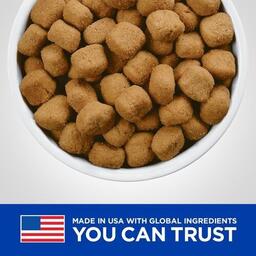 - Состав Рис пивоваров, цельнозерновая кукуруза, куриные субпродукты, порошкообразная целлюлоза, свиной жир, соевые бобы, молочная кислота, вкус куриной печени, соевое масло, сульфат кальция, хлорид калия, L-лизин, йодированная соль, хлорид холина, витамины (Добавка витамина Е, L-аскорбил-2-полифосфат (источник витамина С), добавка ниацина, мононитрат тиамина, добавка витамина А, пантотенат кальция, добавка витамина B12, гидрохлорид пиридоксина, добавка рибофлавина, добавка витамина D3, фолиевая кислота, ), минералы (сульфат железа, оксид цинка, сульфат меди, оксид марганца, йодат кальция, селенит натрия), таурин, смешанные токоферолы для свежести, натуральные ароматизаторы, бета-каротин