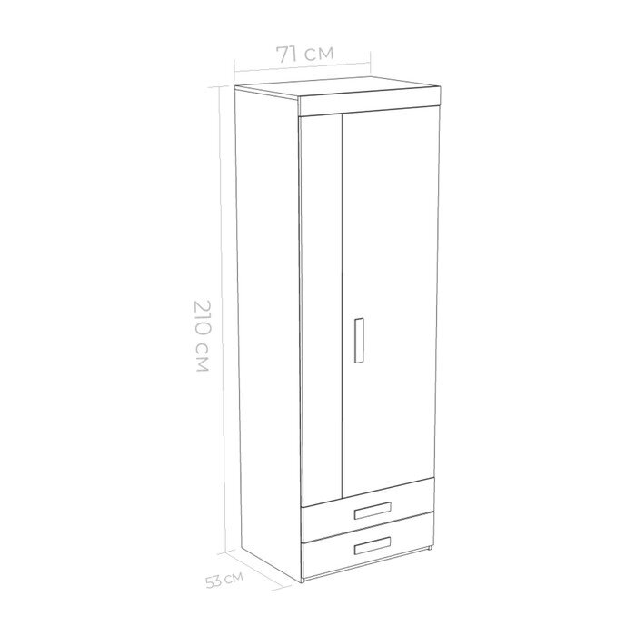 - Габариты (глубина х ширина х высота) 70, 8 см × 52, 5 см × 209, 8 см
