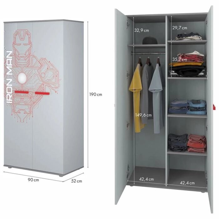 - Габариты (глубина х ширина х высота) 52 см × 90 см × 190 см
