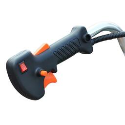 Триммер имеет вид металлической трубки, к концу которой закрепляется триммерная головка для резки травы. Кроме того в состав триммера входит нож, леска и ремень.
