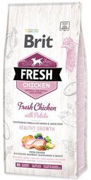 - Дополнительная информация Свежая курица с картофелем, гречкой, черной смородиной и петрушкой. Супер премиум формула для щенков и младших собак 1–12 месяцев.