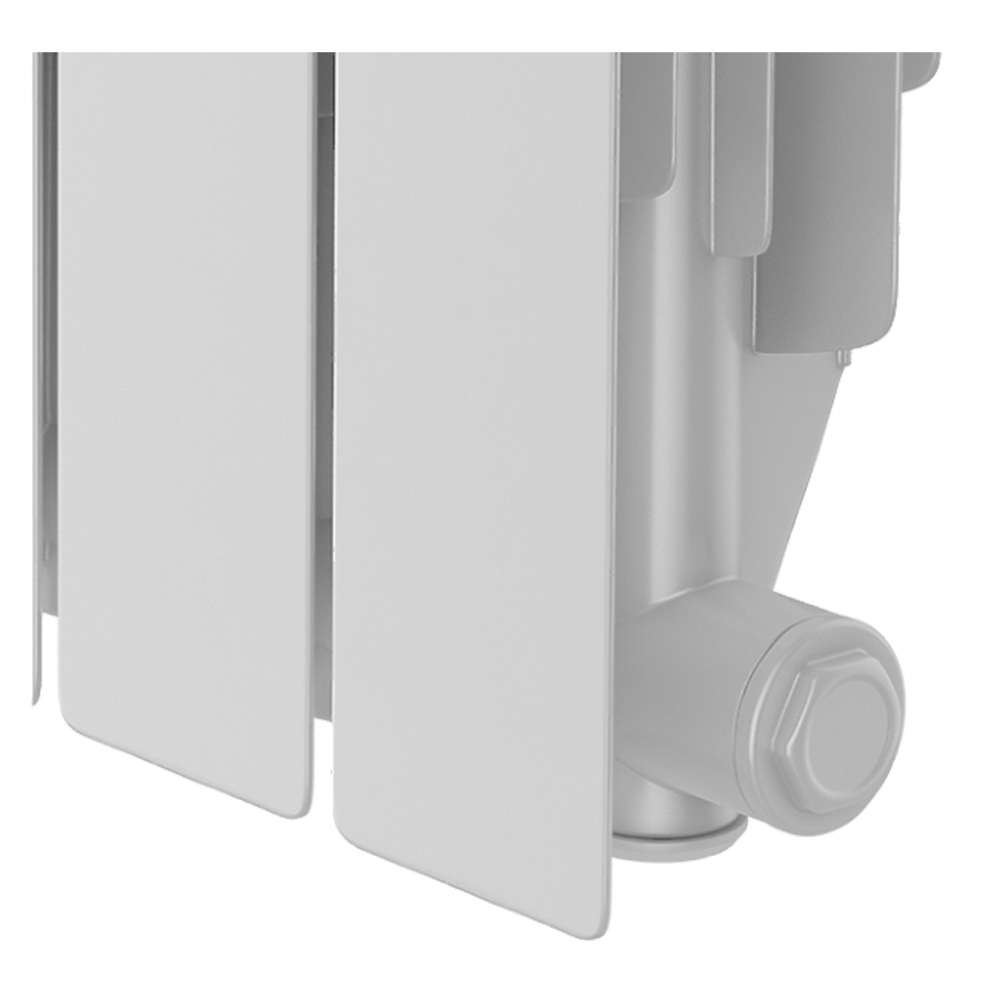 Алюминиевый радиатор Royal Thermo Indigo 500 с увеличенной массой и технологией PowerShift (дополнительные ребра на вертикальном коллекторе) для получения максимальной мощности от каждой секции. Благодаря дополнительному крылу в верхней части секции возникает обратно направленный поток воздуха. Обратная конвекция способствует эффективному отсечению холодного воздуха, поступающего из окна, улучшению распределения воздуха по помещению и «выравниванию» амплитуды (перепада) температуры воздуха в разных по высоте слоях.
