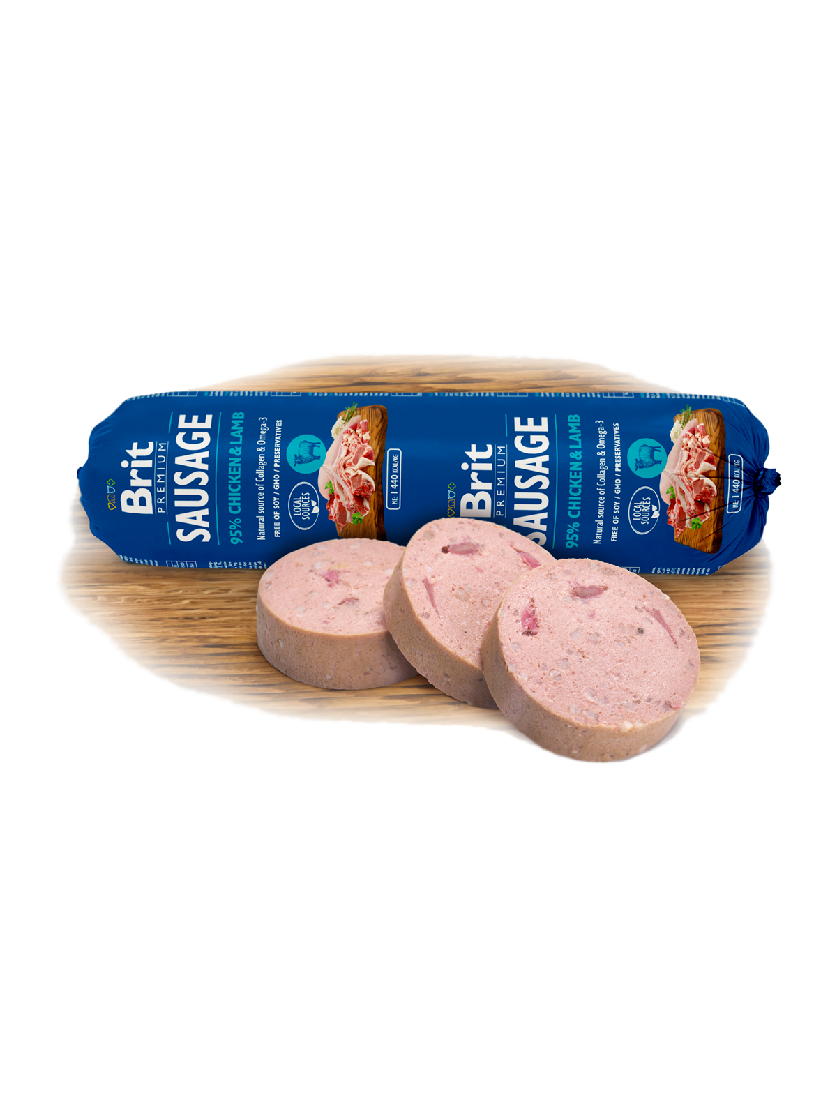 - Состав 95% мясо и продукты животного происхождения, 85% курица и продукты из нее, баранина 10%, крупы (рис 3,5%), бульон 1%, коллаген 0,5%.
