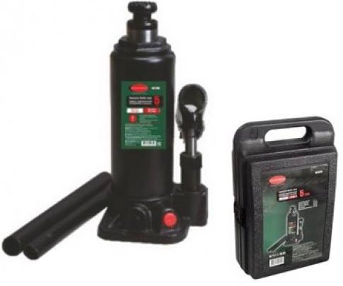 Домкрат гидравлический; бутылочный; грузоподъемность 5 т; высота подхвата 21.6 см; высота подъема 41.3 см; вес 5 кг.