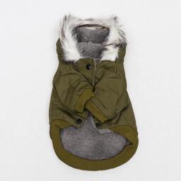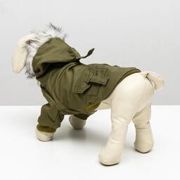 Куртка для собак с меховым капюшоном, M (ДС 25 см, ОШ 26 см, ОГ 37 см), зелёная