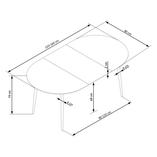 COLORADO — раздвижной стол со столешницей овальной формы, поверхность которого 120×80 см, а в разложенном виде 160×80 см.