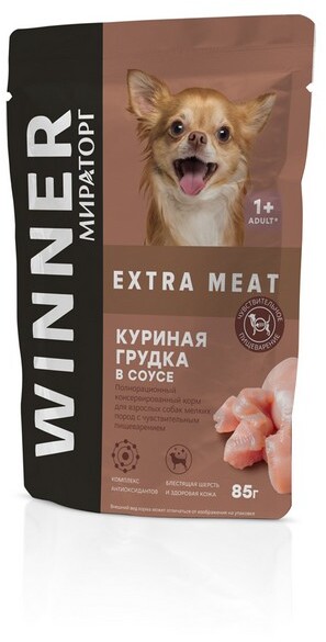 Паучи Winner Extra Meat с Куриной грудкой в соусе для собак мелких пород с чувствительным пищеварением