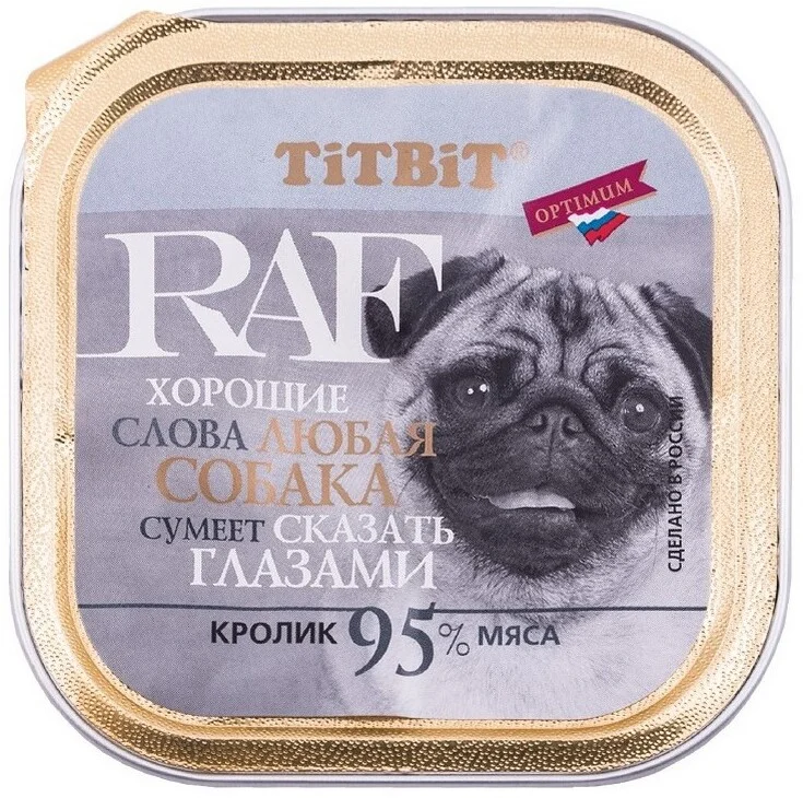 кролик (мясо, субпродукты), растительное масло, мука рисовая, морская соль, желирующая добавка, вода