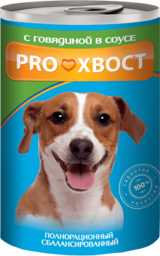 Консервированный сбалансированный корм для собак с говядиной в соусе. Ежедневное питание для взрослых собак всех пород. Влажный корм Proхвост (Прохвост)– сытный рацион на каждый день.