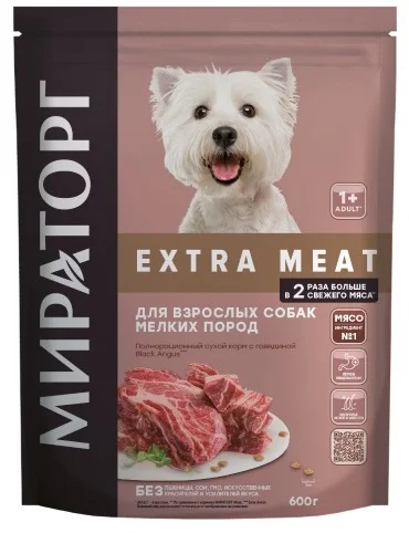 Сухой корм Мираторг Extra Meat Black Angus с говядиной для взрослых собак мелких пород старше 1 года