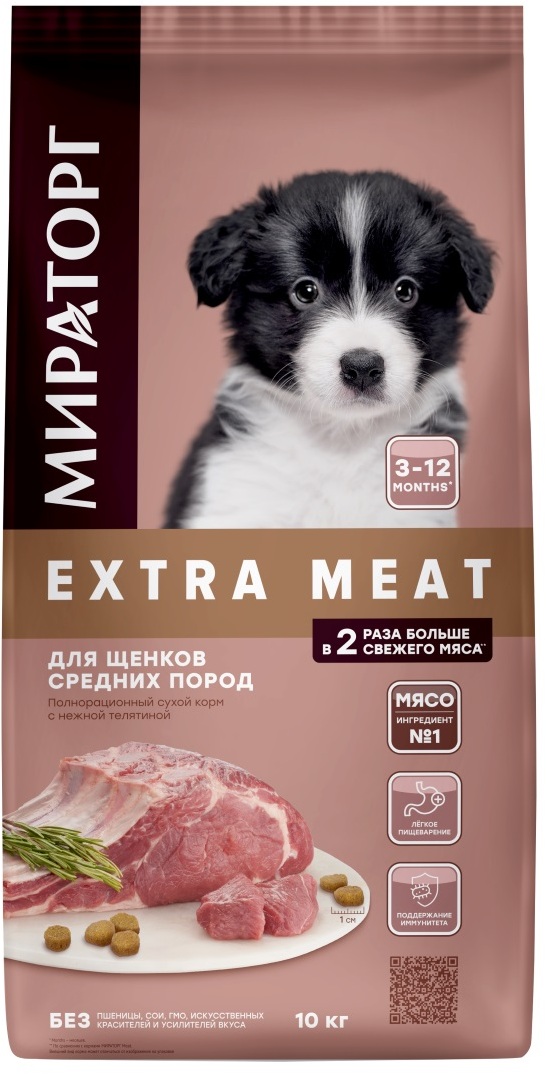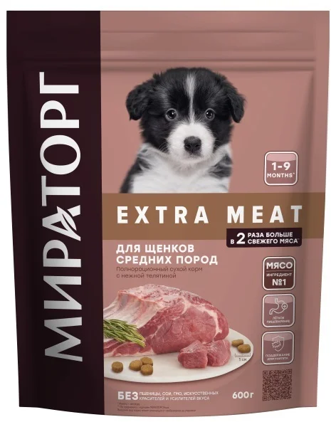 Сухой корм Мираторг Extra Meat c нежной телятиной для щенков средних пород в возрасте от 3 до 12 месяцев