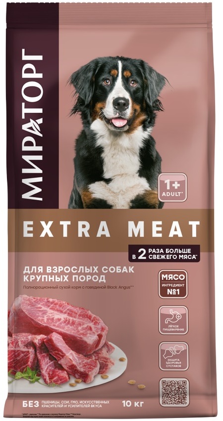 Сухой корм Мираторг Extra Meat Black Angus с говядиной для взрослых собак крупных пород старше 1 года