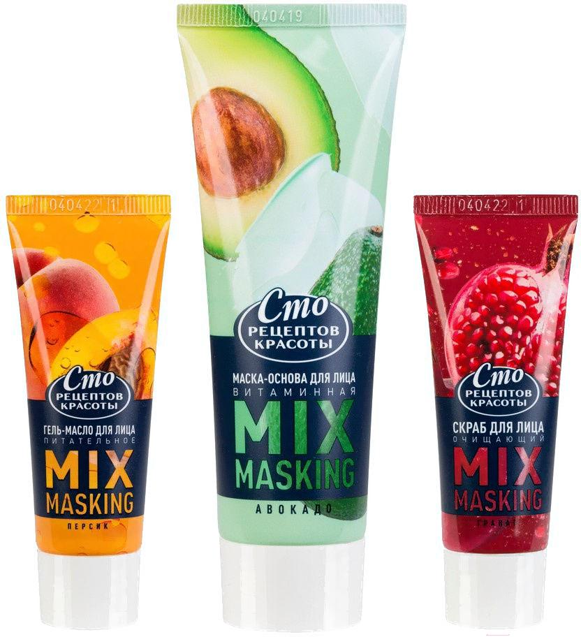 Набор косметики для лица Сто рецептов красоты Mix Box Гель-масло 20мл+Маска-основа 20мл+Скраб 80мл
