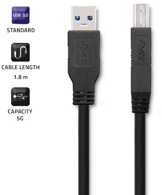 Провод Qoltec USB 3.0-A To USB 3.0-B 50362, черный, 1.8 м