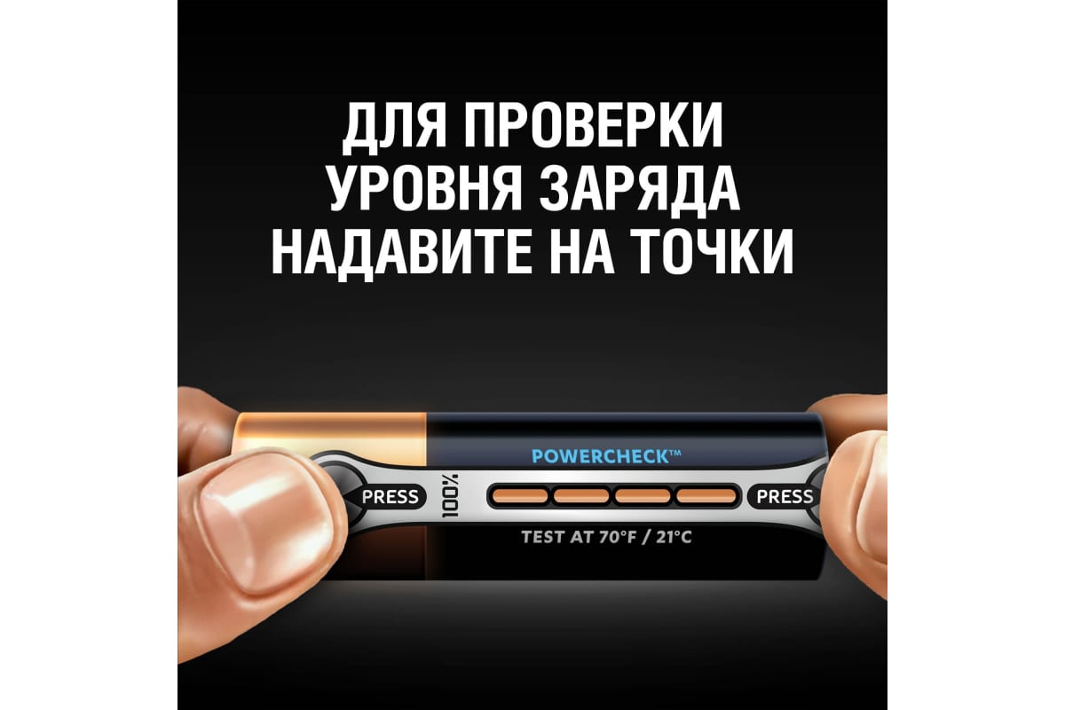 • Батарейки Duracell Ultra оснащены уникальным индикатором заряда Powercheck™, благодаря которому можно легко определить уровень заряда каждой батарейки.