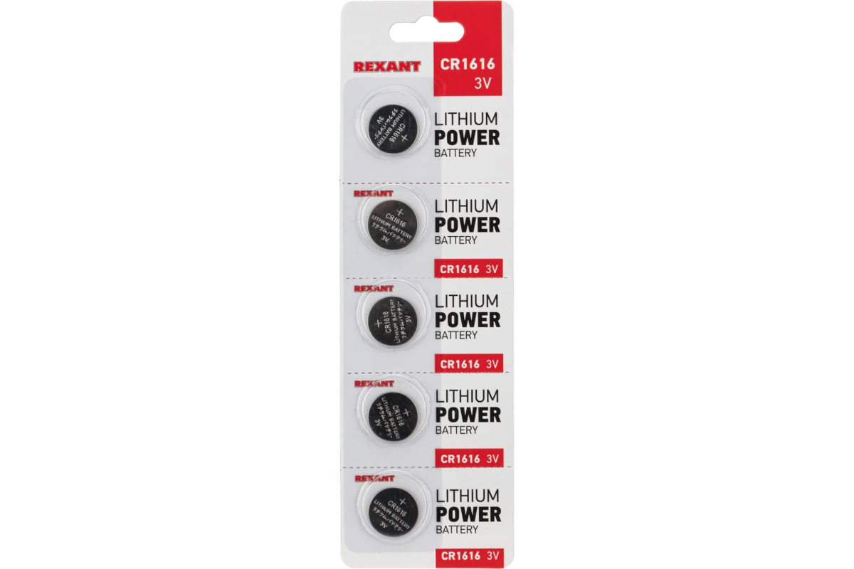 Литиевая батарейка REXANT CR1616 3V 50 mAh 5 шт 30-1104 предназначена для использования в фотоаппаратах, электронике, системах безопасности (сигнализациях).