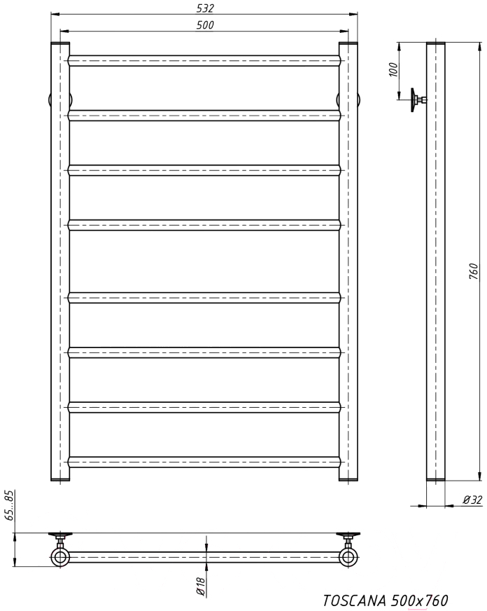 - Диаметр трубы (коллектора) 32 мм