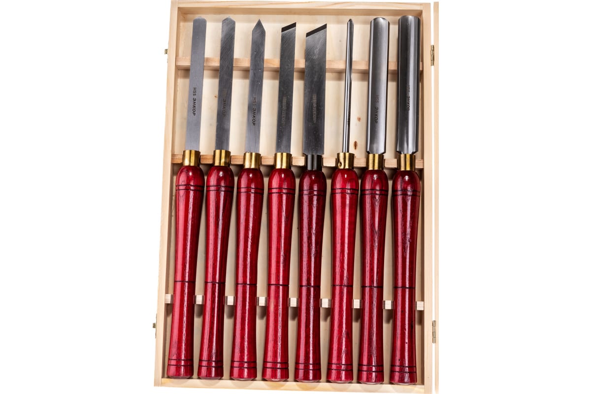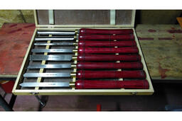 Резцы в наборе Энкор 10430 различного профиля, изготовлены из быстрорежущей стали. Рукоятки деревянные, длинные, покрытые лаком, удобные для удержания двумя руками. В комплекте 8 шт.
