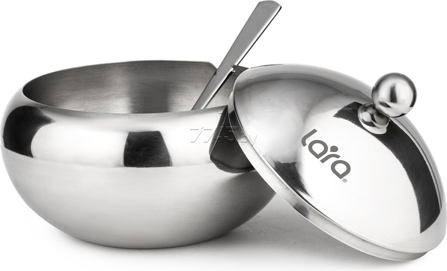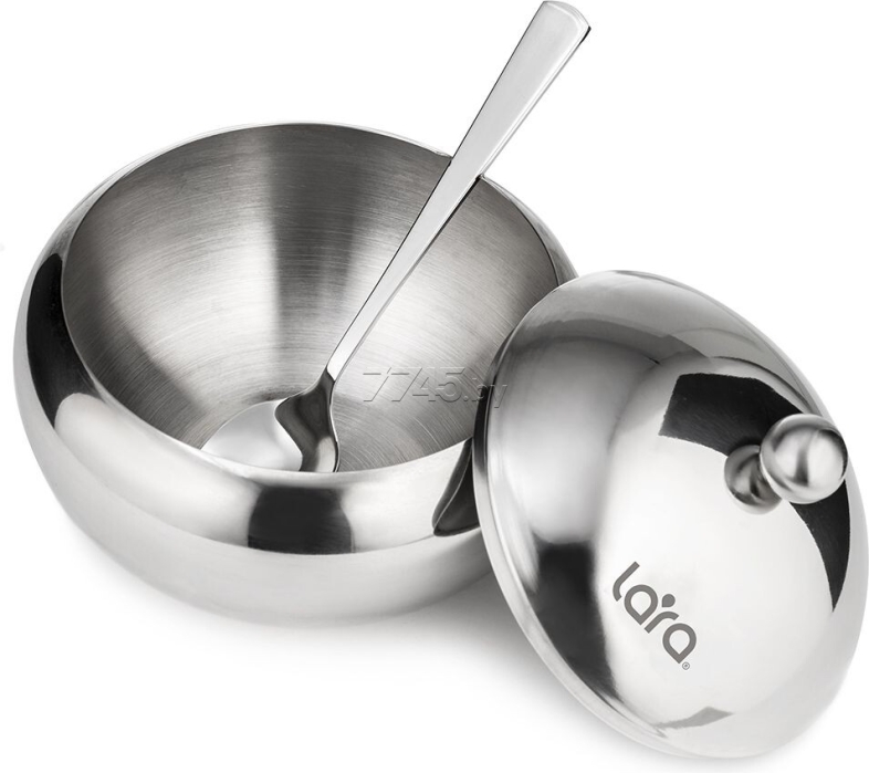 Сахарница LARA LR08-35 SS (30358) – высококачественная сталь. Удобная выемка для ложки в сахарнице. Зеркальная полировка. Толщина стенок корпуса 0,7 мм. Стальная ложечка в комплекте.