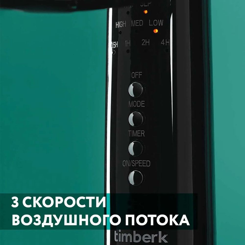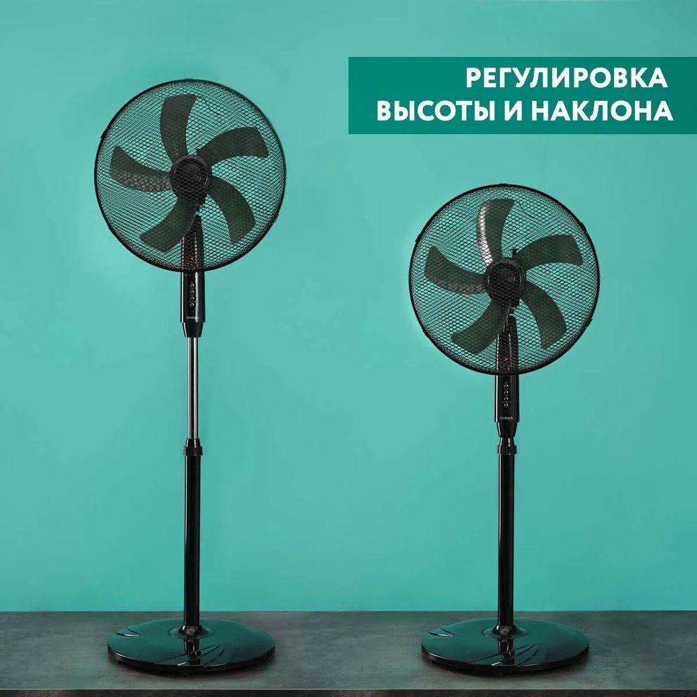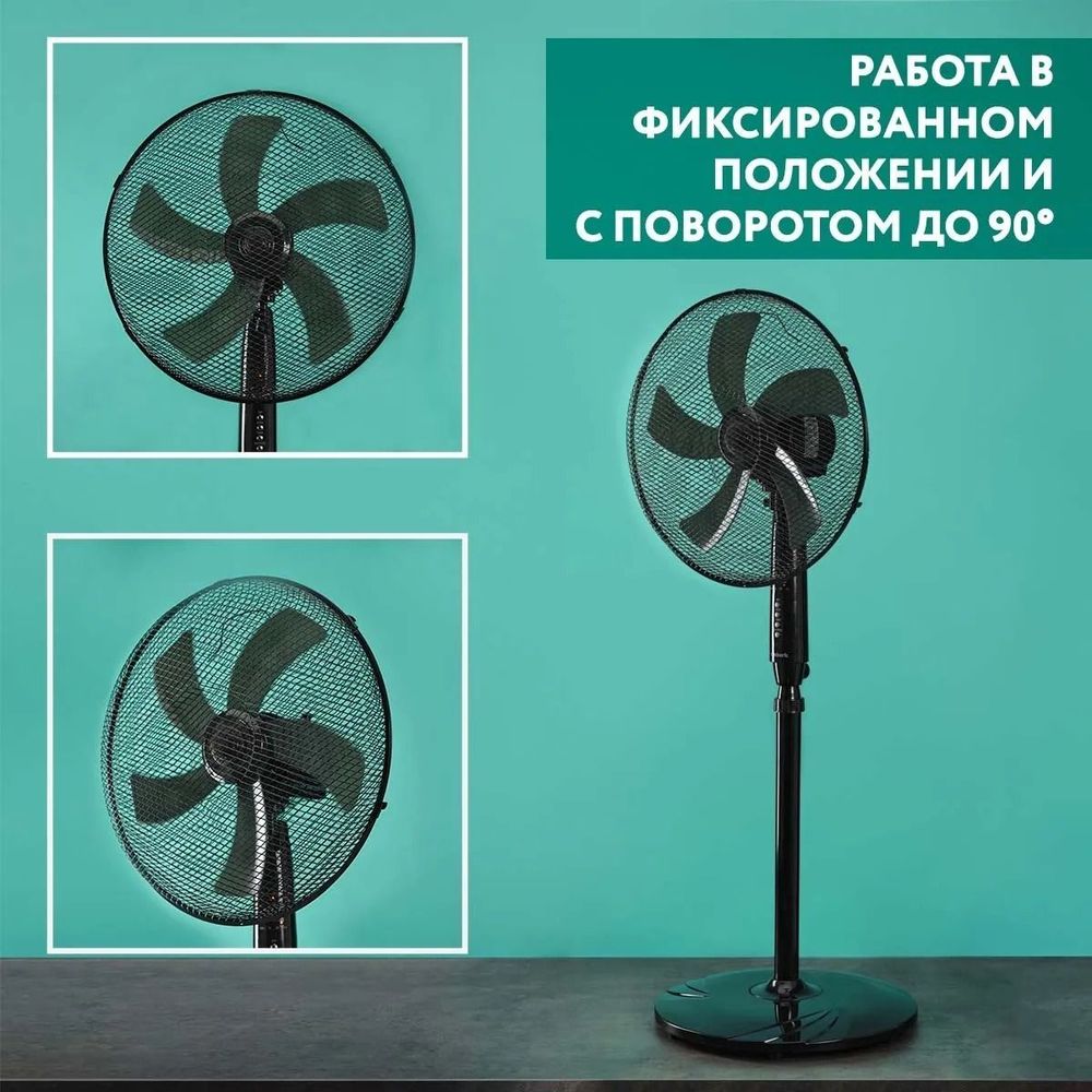 Напольный, осевой, мощность 45 Вт, лопасти 40 см, количество скоростей 3, управление механическое, вращающийся корпус, пульт ДУ, таймер.