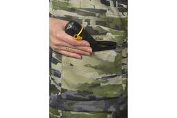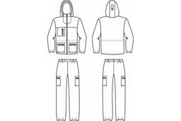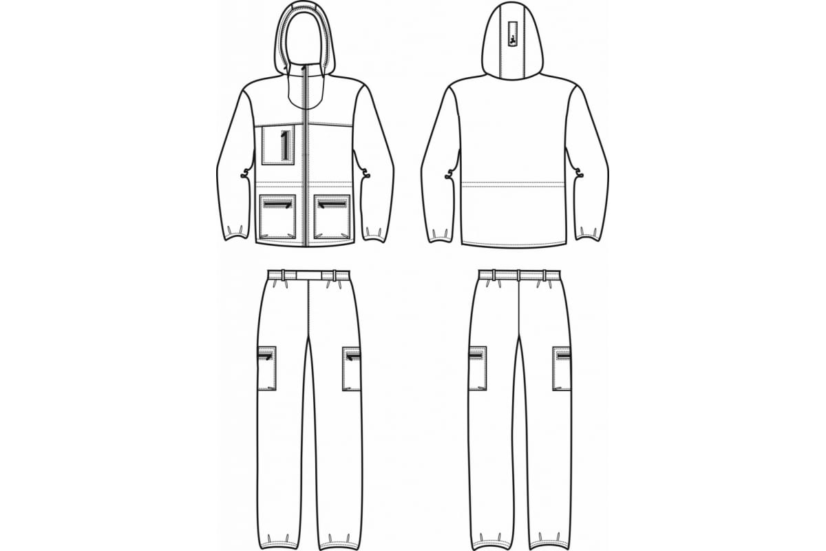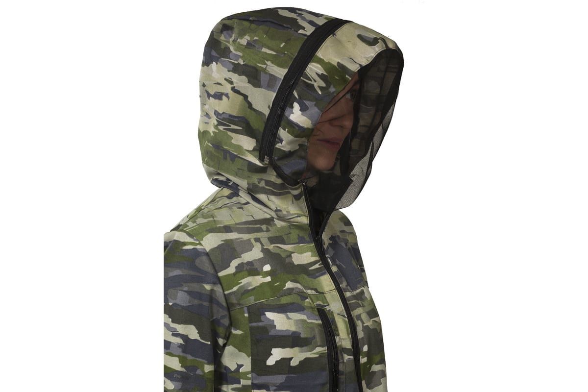 Удлиненная куртка с центральной застежкой на молнию имеет утягивающуюся по талии кулису с фиксаторами. Низ рукавов выполнен на эластичной тесьме. Капюшон оснащен противомоскитной сеткой на молнии, регулируется по высоте. Для размещения вещей предусмотрены два боковых кармана на молнии и один нагрудный карман.