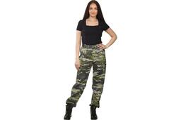 Брюки прямого силуэта не сковывают движения. Пояс по талии и утяжка по низу брюк выполнены на эластичной тесьме. Есть два кармана на молнии.