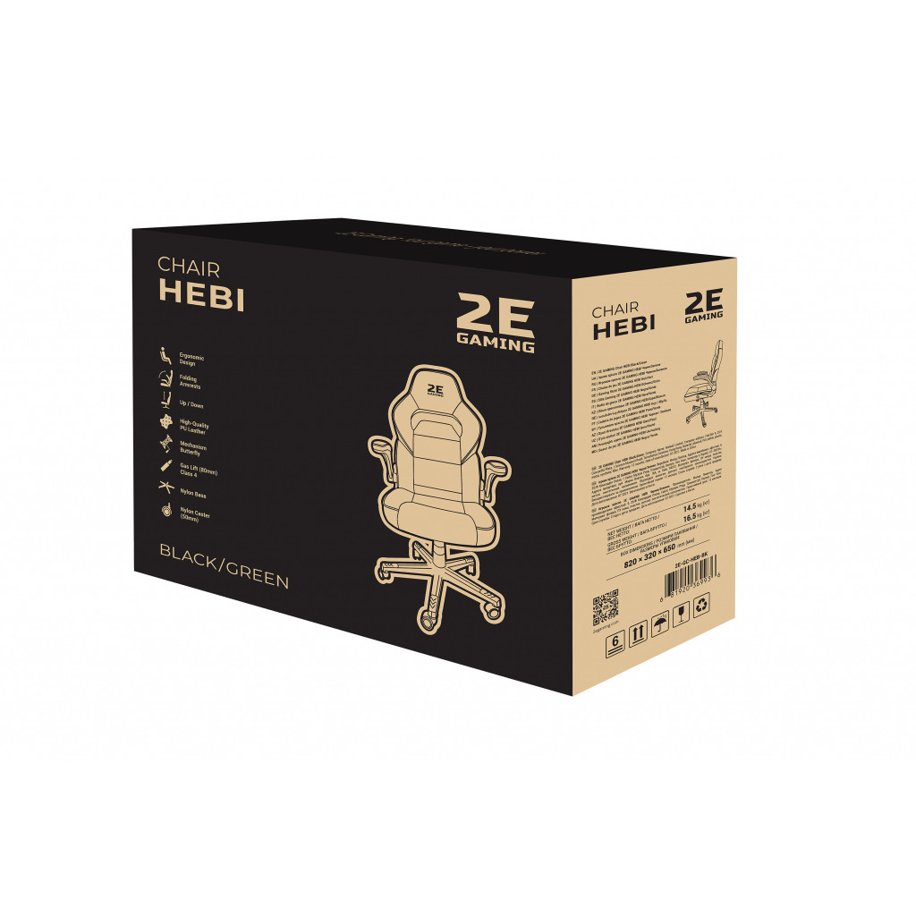 Крісло ігрове 2E GAMING HEBI Black/Green (2E-GC-HEB-BK)