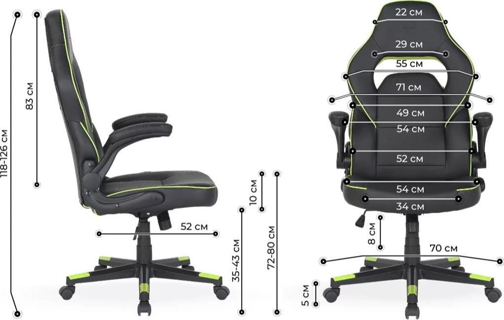 Компактний ергономічний дизайн. Яскраві зелені вставки додають свіжості атмосфері та підкреслюють унікальний характер власника. Усе враховано, але нічого зайвого. Крісло гарно пасуватиме до атмосфери підліткової кімнати, сприятиме як ігровим звитягам, так і успіхам в навчанні.