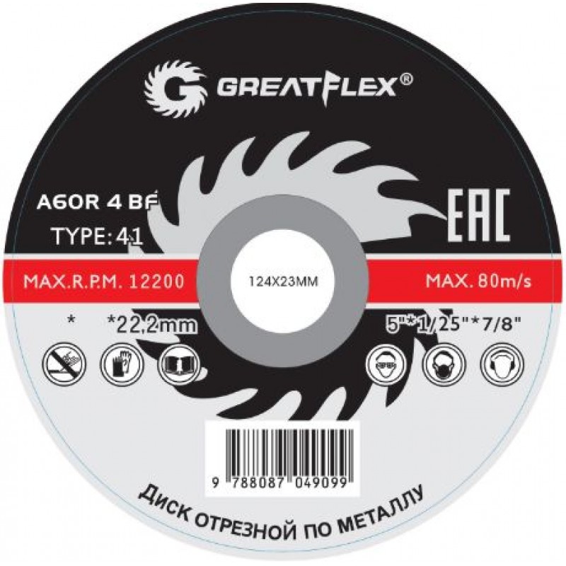 Диск отрезной по металлу GREATFLEX T41-125х1,2х22,2мм Master