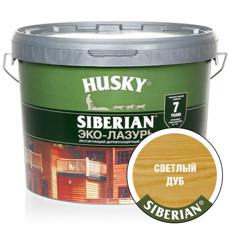 HUSKY SIBERIAN «Эко-Лазурь для дерева» полуматовая светлый дуб (9л)