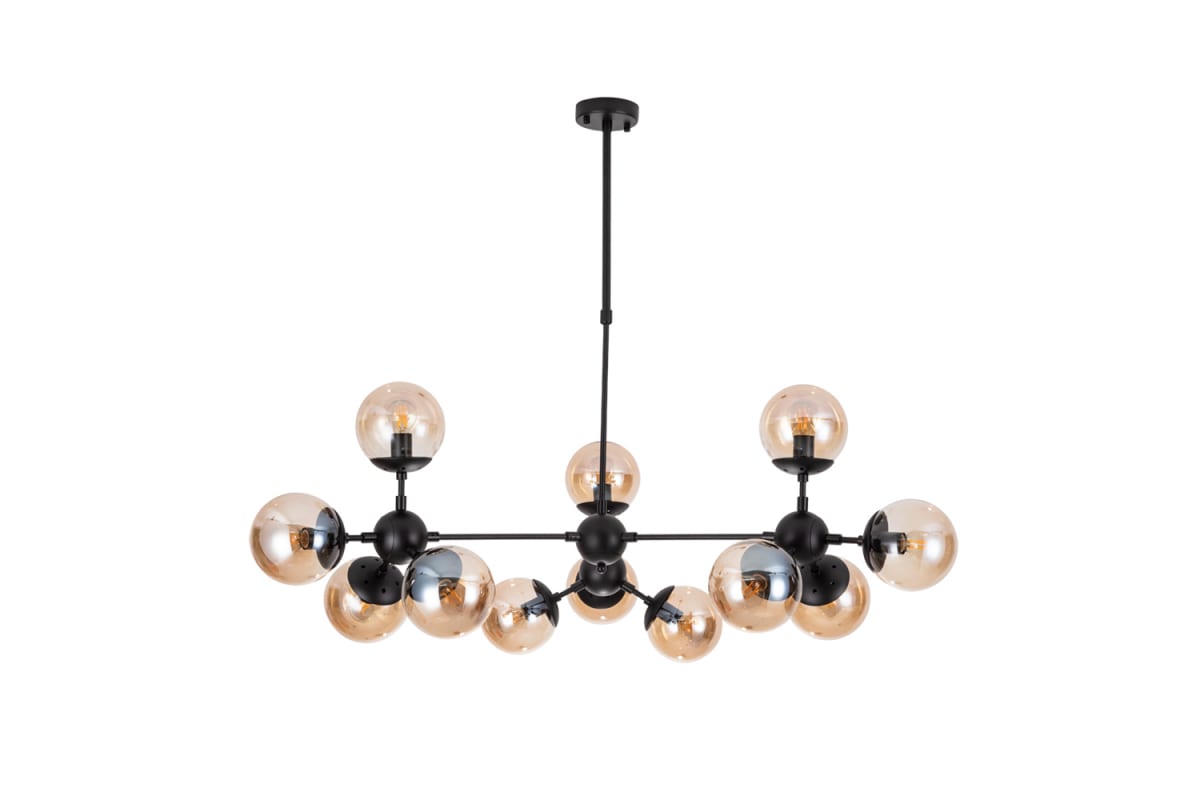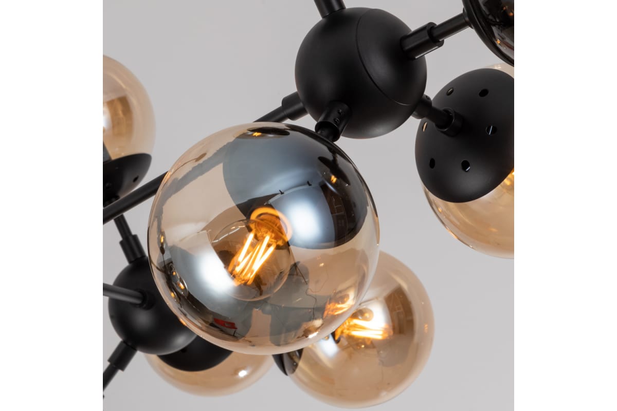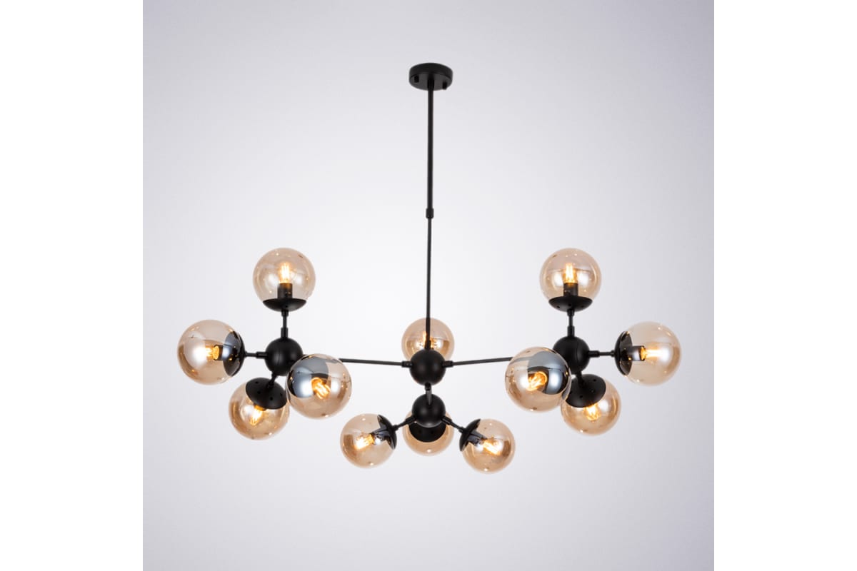 Подвесная люстра Arte Lamp BOLLA A1664SP-12BK идеально подойдет для освещения гостиной и подчеркнет стиль помещения. Люстра состоит из металлической арматуры черного цвета и стеклянных прозрачных плафонов цвета янтаря.