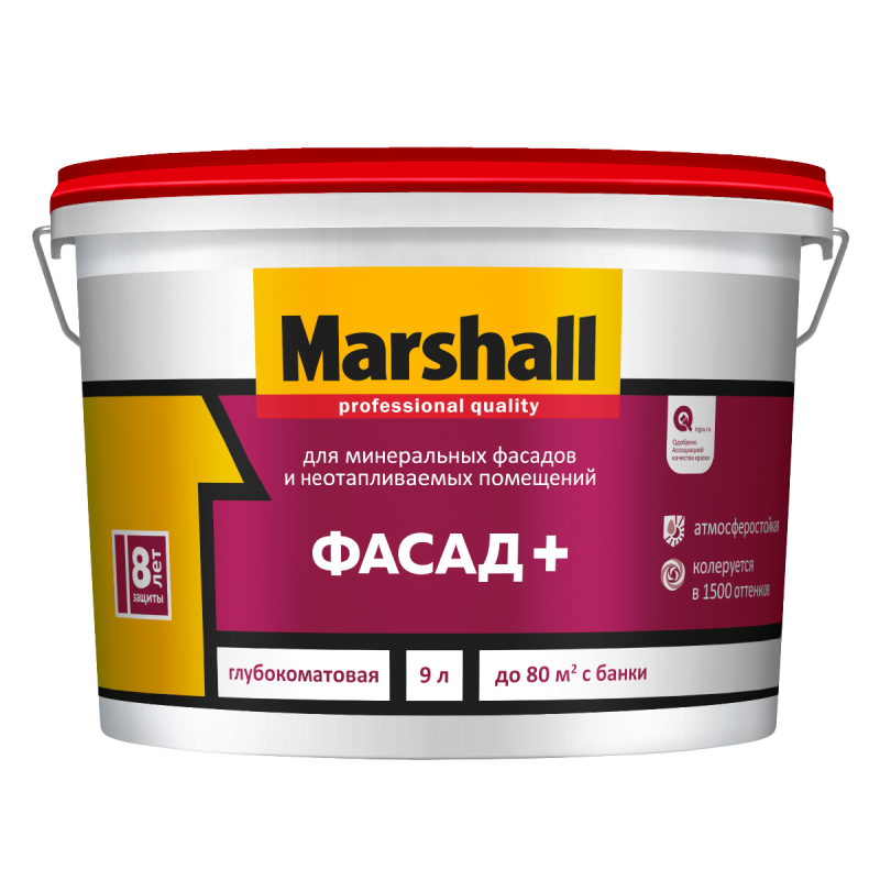 Краска MARSHALL Фасад+ белая - глубокоматовая водно-дисперсионная краска для минеральных фасадов и неотапливаемых помещений
