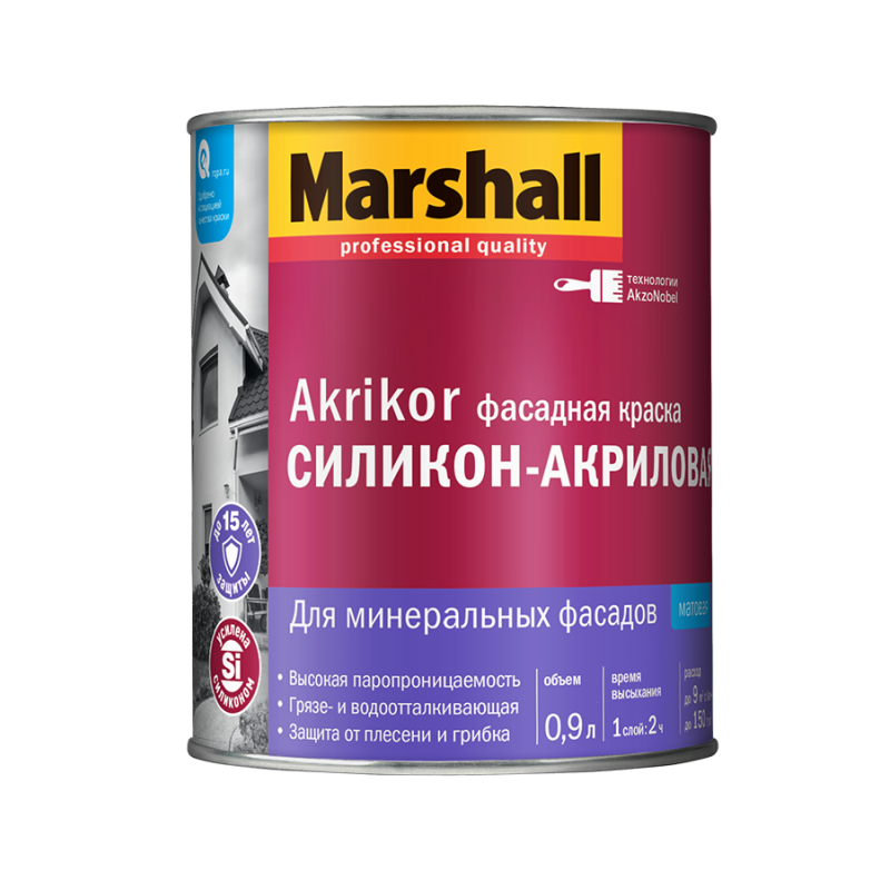 Краска MARSHALL Akrikor 0,9л фасадная силикон-акриловая BС