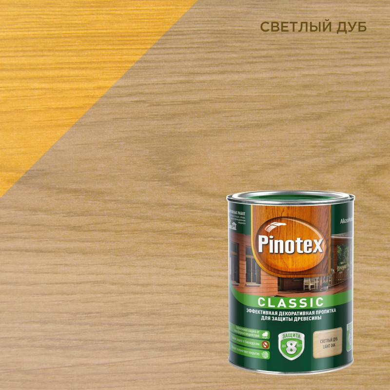 Пропитка для дерева PINOTEX Classic (пинотекс классик) СВЕТЛЫЙ ДУБ 1л для наружных работ