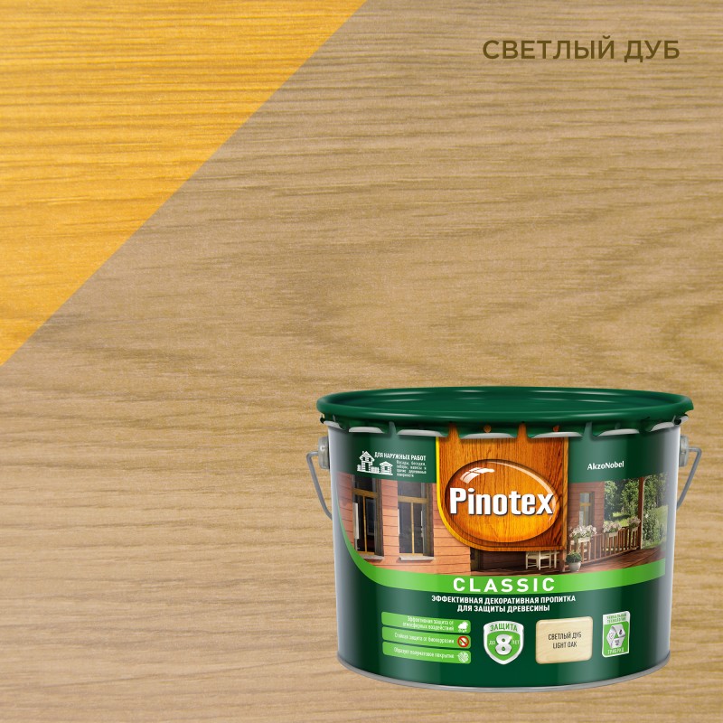 Пропитка для дерева PINOTEX Classic (пинотекс классик) СВЕТЛЫЙ ДУБ 9л для наружных работ