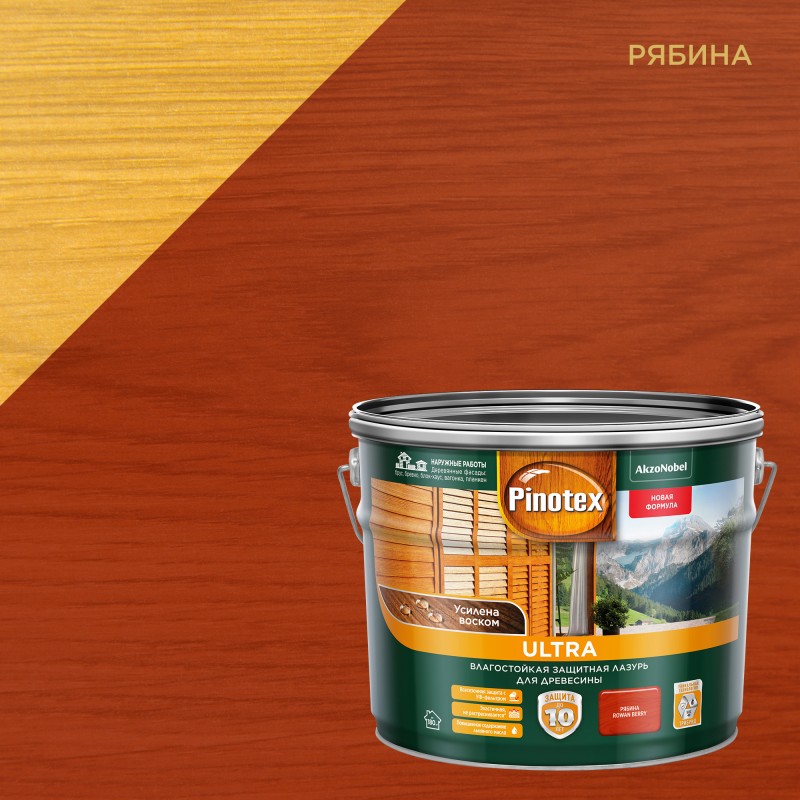 Лазурь для дерева PINOTEX Ultra (пинотекс ультра) РЯБИНА 9л