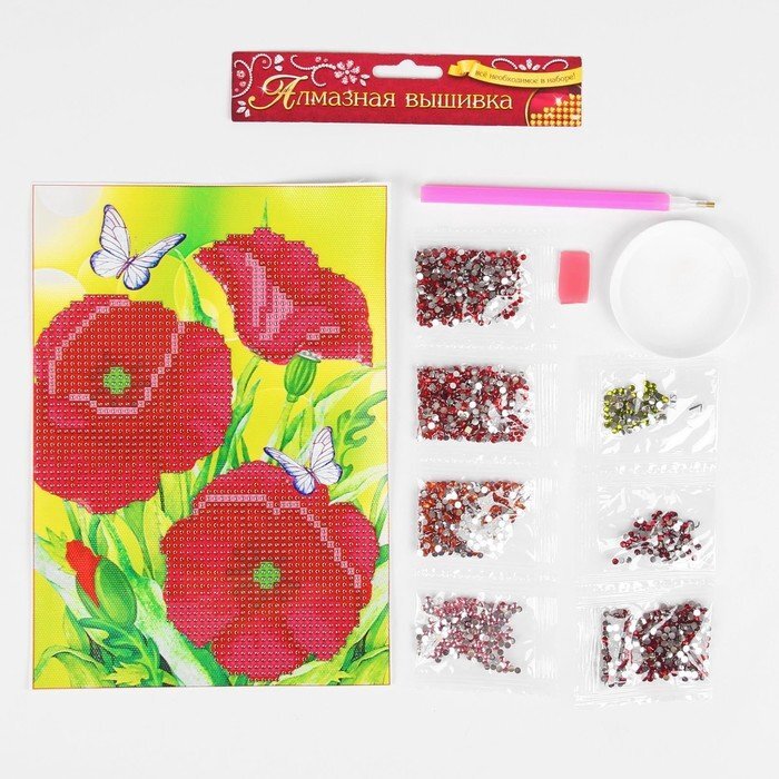 Алмазная вышивка с частичным заполнением "Маки", 15 х 21 см. Набор для творчества