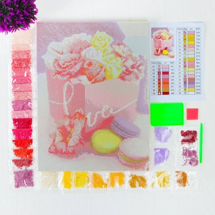 Алмазная вышивка с полным заполнением на раме "Цветы" 30х40 см