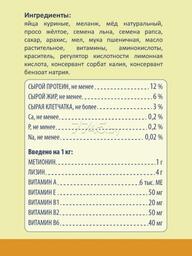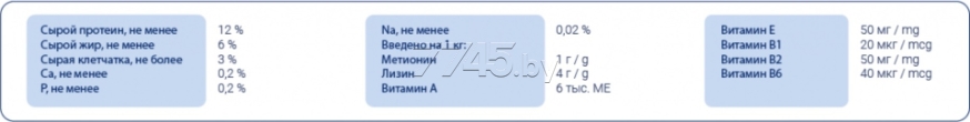 Рекомендации по кормлению: в зависимости от размера птицы дополнительный корм может составлять 1/3 часть от суточной порции основного рациона. Корм следует насыпать в пустые, сухие и чистые кормушки. Давать два-три раза в неделю. Во время периода линьки используйте корм ежедневно. Желательно начать применение рациона за две недели до начала линьки и продолжать кормление до полной смены оперения. Птицам, участвующим в разведении, начинайте давать корм ежедневно за 2-3 недели до кладки первого яйца. Кормление следует продолжать до завершения выкармливания птенцов. Необходимо проводить замену корма и воды ежедневно.