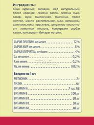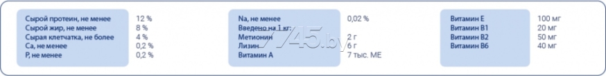 Рекомендации по кормлению: в зависимости от размера птицы дополнительный корм может составлять 1/3 часть от суточной порции основного рациона. Корм следует насыпать в пустые, сухие и чистые кормушки. Давать два-три раза в неделю. Во время периода линьки используйте корм ежедневно. Желательно начать применение рациона за две недели до начала линьки и продолжать кормление до полной смены оперения. Птицам, участвующим в разведении, начинайте давать корм ежедневно за 2-3 недели до кладки первого яйца. Кормление следует продолжать до завершения выкармливания птенцов. Необходимо проводить замену корма и воды ежедневно.