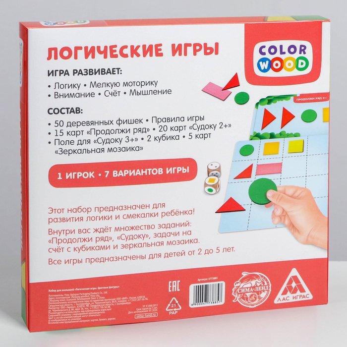 • Развитие навыков Фигуры, цвета, Логика, Счёт, Моторика