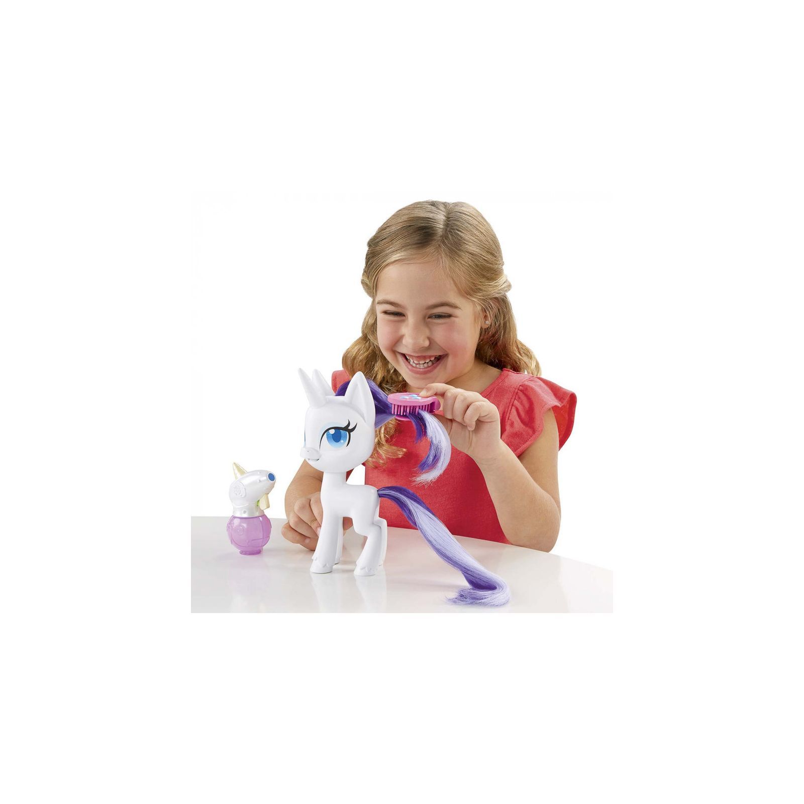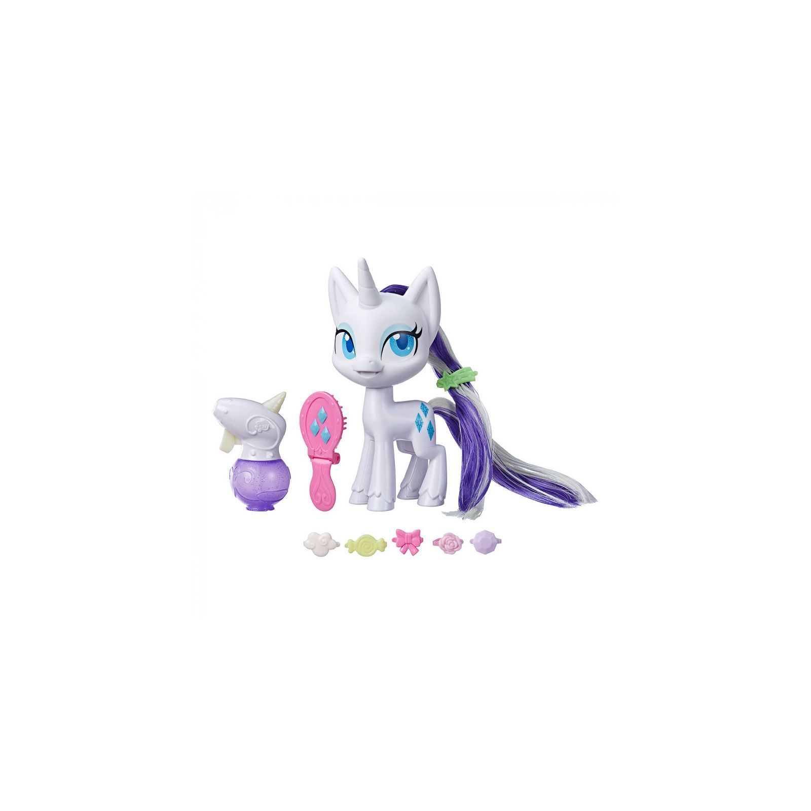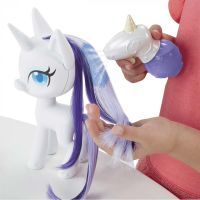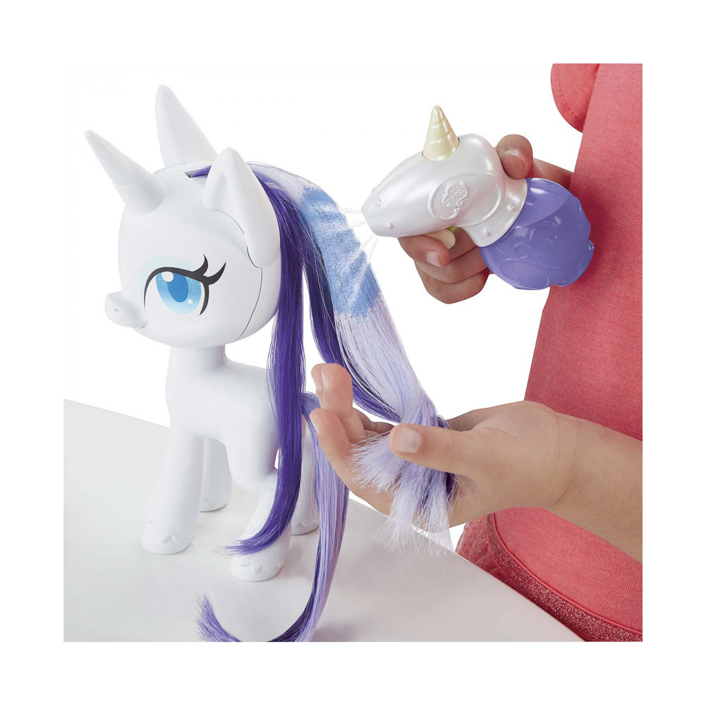 Пориньте в магію з улюбленою героїнею! Фігурка My Little Pony Раріті з чарівною гривою має незвичайне волосся, яке росте і змінює колір. Розчешіть конячці гриву і хвіст щіткою, щоб волосся почало рости. Потім наповните флакончик крижаною водою і розпорошите на пасми, щоб білий колір змінився на синій. Надзвичайно довге волосся Раріті закріплене від кореня усередині голови. Вони м'які і легко піддаються розчісуванню і укладанню. У комплекті з фігуркою також йдуть 10 аксесуарів-сюрпризів для гри і створення стильних зачісок.