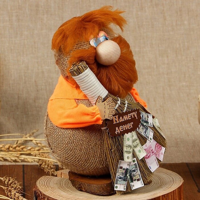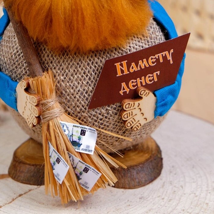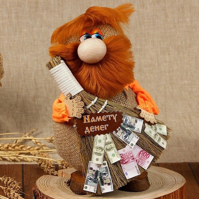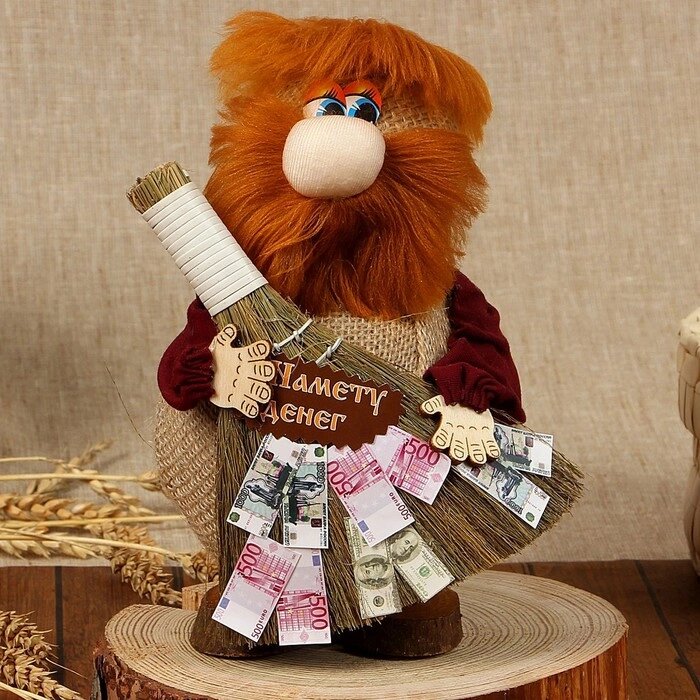 Оберег "Домовой Николаша", с метлой, намету денег, 21 см, микс