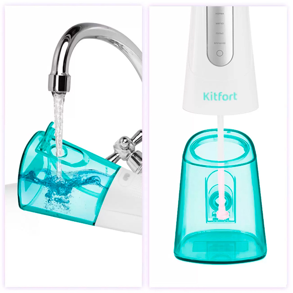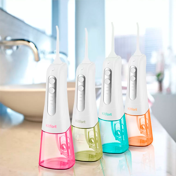 ОсобенностиПортативный ирригатор Kitfort КТ-2918 - это простой и эффективный прибор для чистки полости рта. Тонкая и сильная струя воды не только вымывает остатки еды, налёт из межзубного пространства и пародонтальных карманов, но и массажирует дёсны.