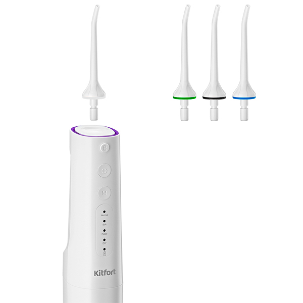 Другие режимыРежимы "Soft" и "Normal" отличаются силой струи. Режим "Pulse" предназначен для массажа дёсен. В режиме "DIY" силу струи вы выбираете самостоятельно. На корпусе отображается выбранный режим работы и заряд батареи.